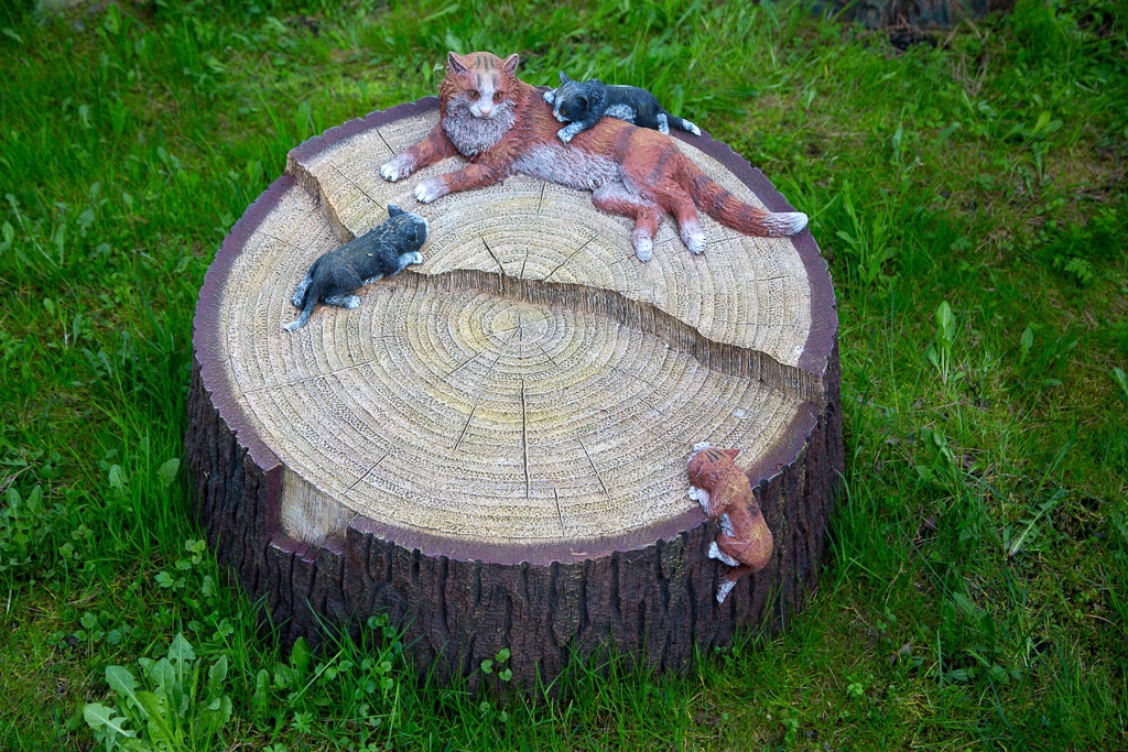 Дизайнерская декоративная крышка «Кошка на пне» оригинально скроет место расположения канализационного люка на участке. Садовая фигура поможет создать экспозицию вашего ландшафта и станет его изюминкой. Фигурка изготовлена из прочного, лёгкого стеклопластика, противоударная и влагостойкая, не боится изменения температуры, сохранит на долгие годы первозданный вид.