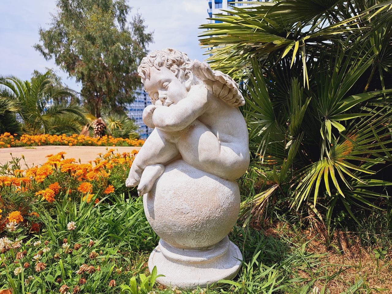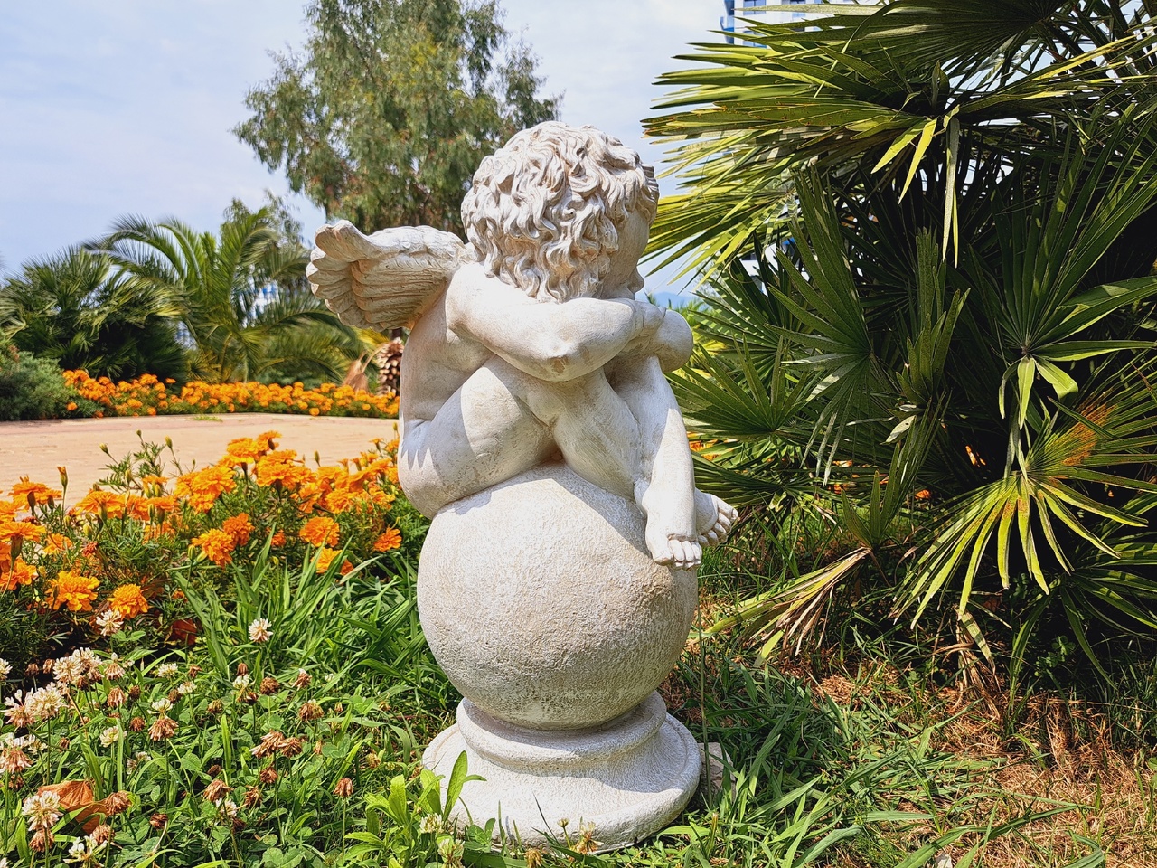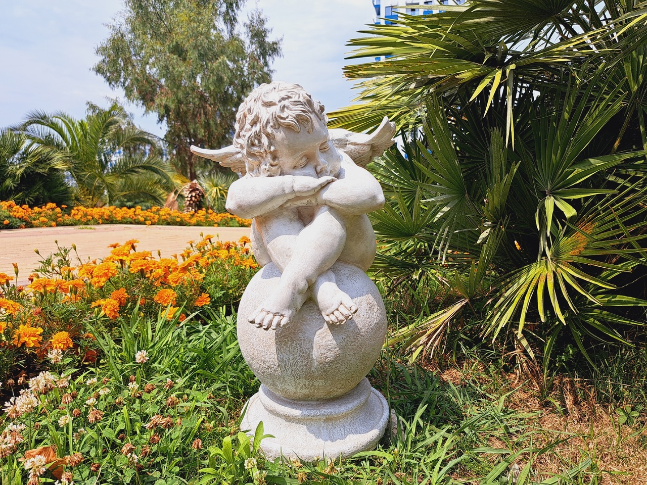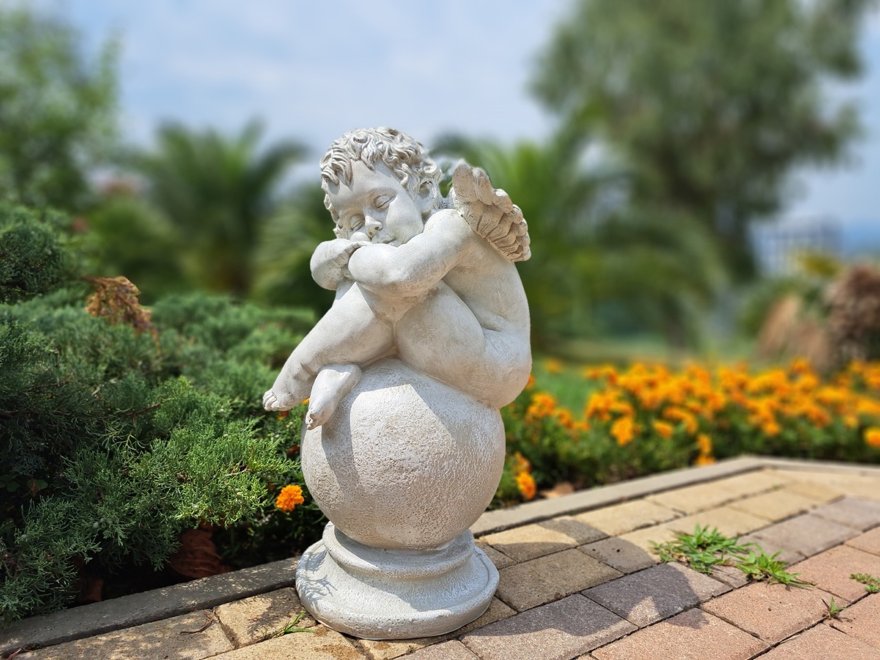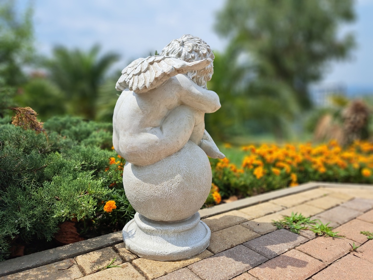 Ангел может быть главным украшением сада, террасы или интерьера — или только его деталью. Внешний вид архитектурных изделий из бетона может отличаться от представленного на картинке в зависимости от технических характеристик продукции производителей. Каждое изделие изготавливается на заказ и патинируется в выбранный цвет, а поверхность структуры отшлифовывается светло-серым оттенком для придания рельефности.