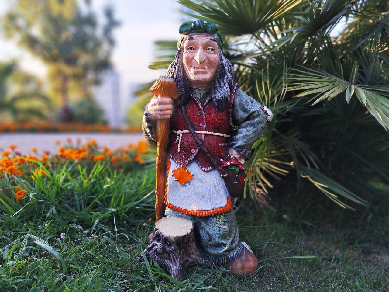 Садовая фигура Баба-Яга с пеньком 78х41х37 см