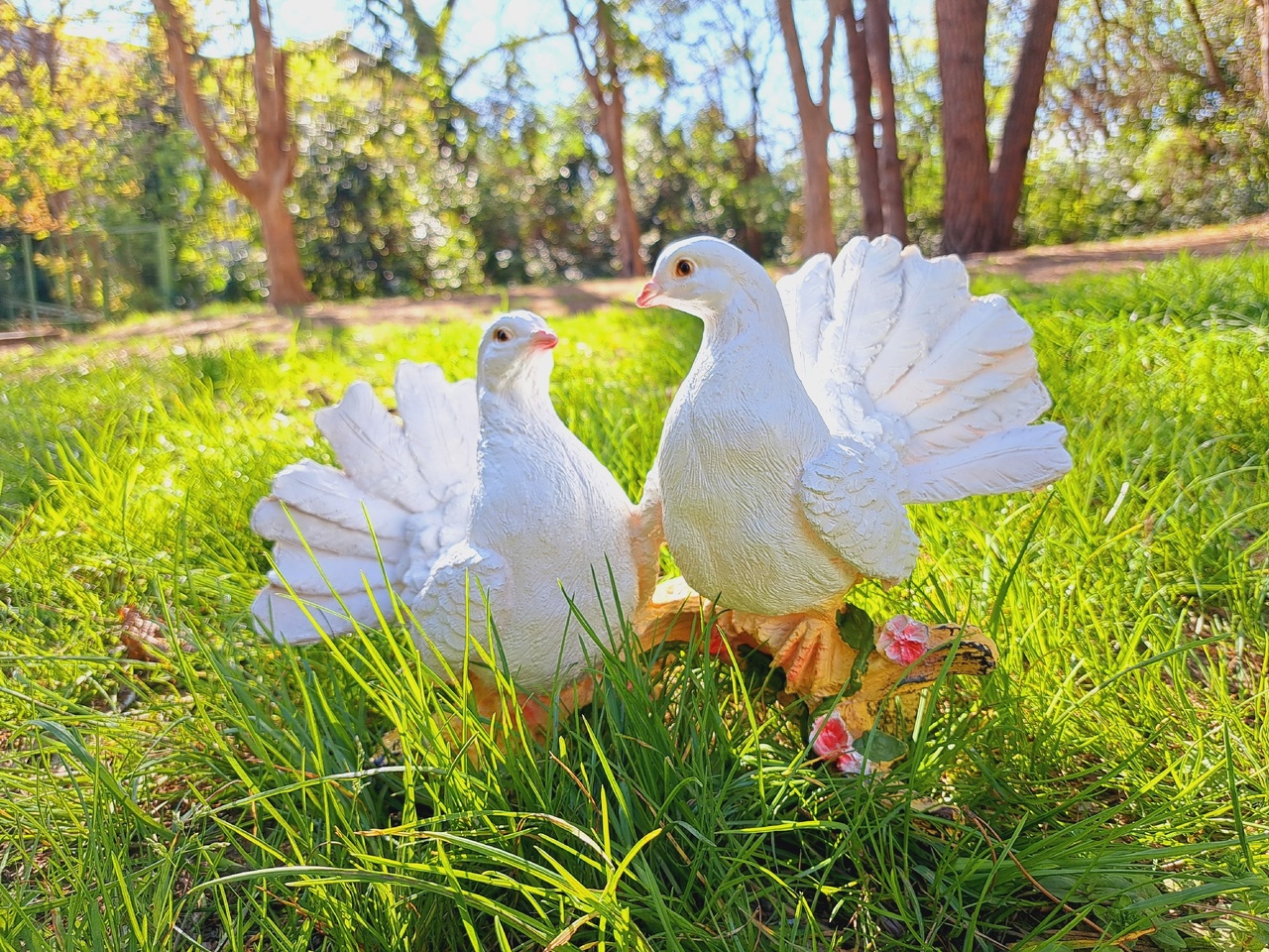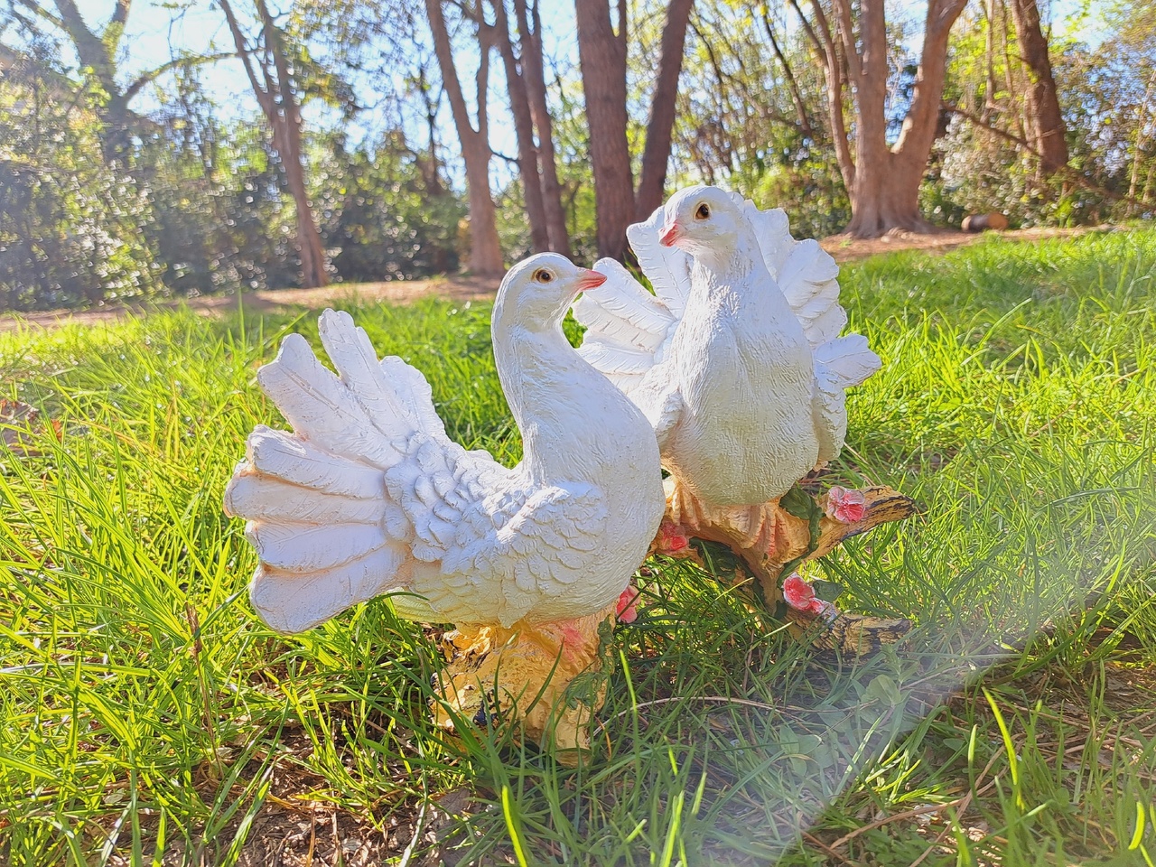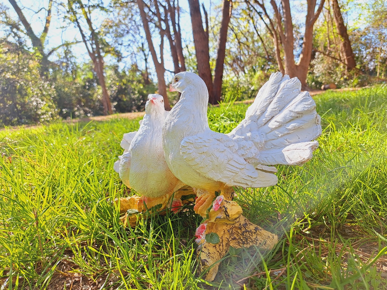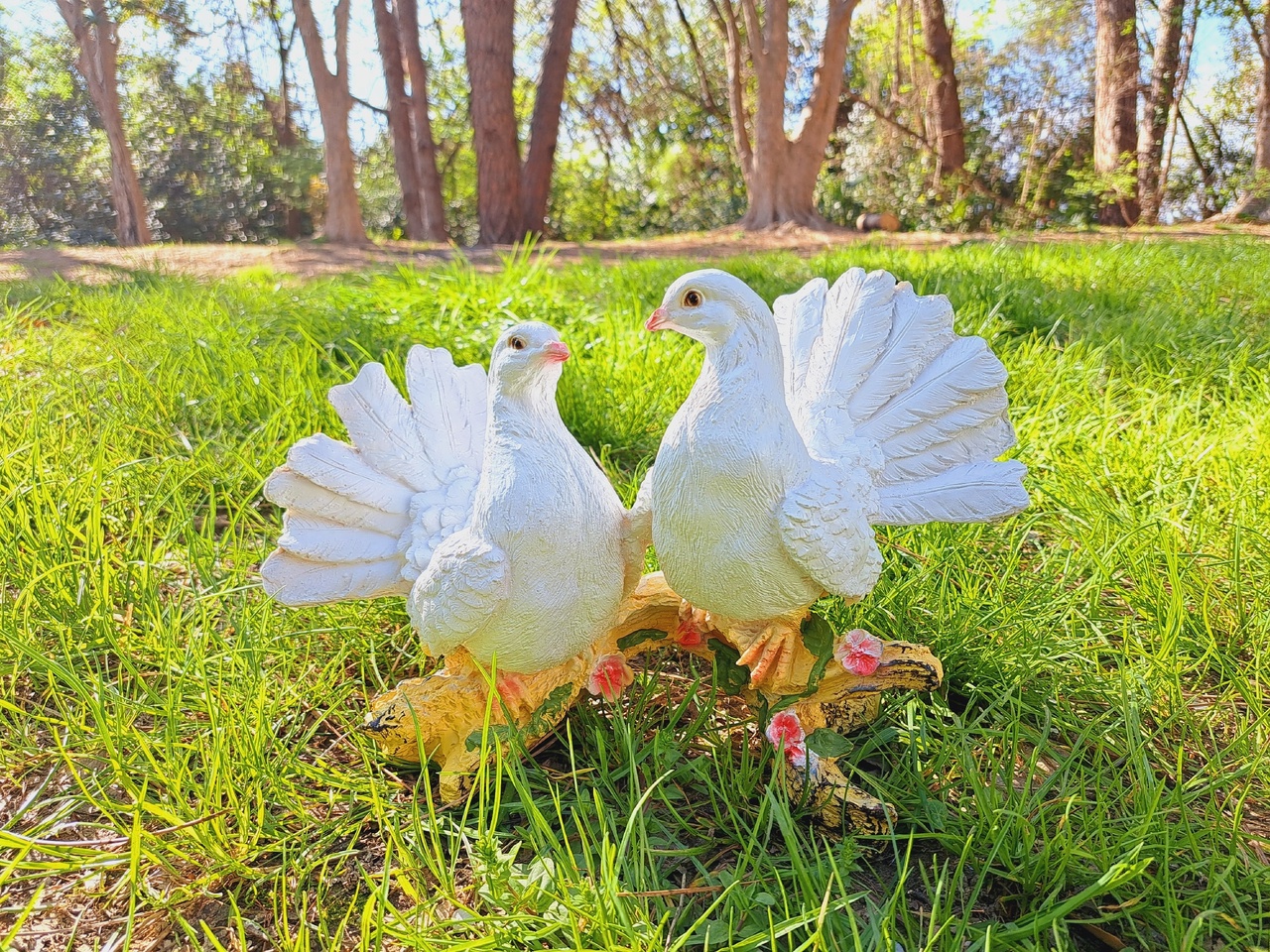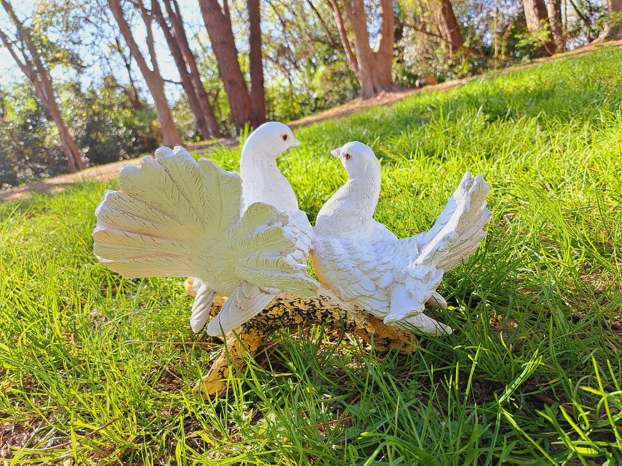 Садовая фигура Белые голуби на коряги ― символ добра и благополучия. Станет украшением свадебных декораций, также будет отлично смотреться в Вашем саду. Садовая фигурка изготовлена из искусственного камня полистоуна, который сочетает в себе все качества природного материала. Изделия из полистоуна отличаются повышенной прочностью и износостойкостью, они устойчивы к воздействию влаги, ультрафиолетовых лучей и других разрушающих факторов внешней среды, а используемые при создании фигурок лакокрасочные материалы устойчивы к перепаду температур и погодным осадкам.