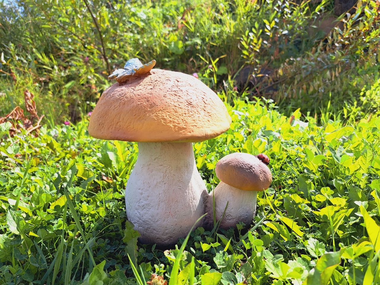 Садовые фигуры грибов привносят в ландшафт уникальность,  придают саду особую ауру, привлекают внимание и делают участок интереснее. С их помощью даже самую стандартную дачу можно преобразить в райский уголок.
