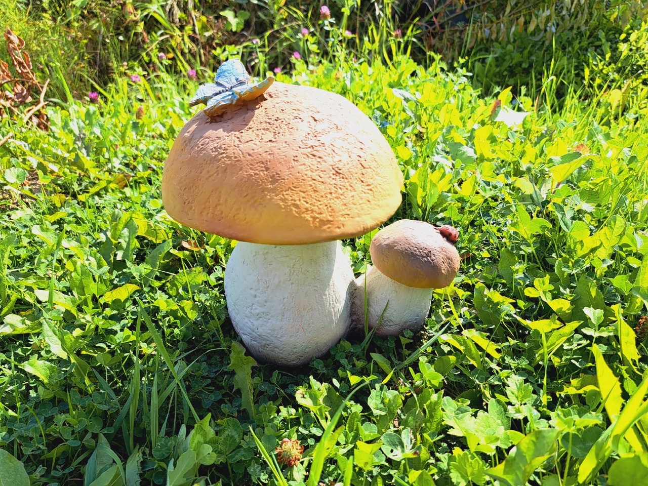 Садовая фигура Гриб белый, двойной с бабочкой 29х23 см