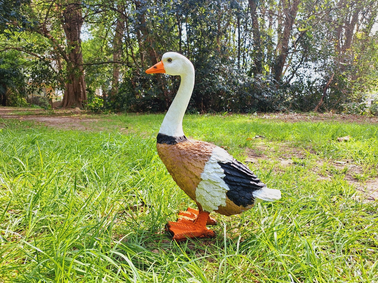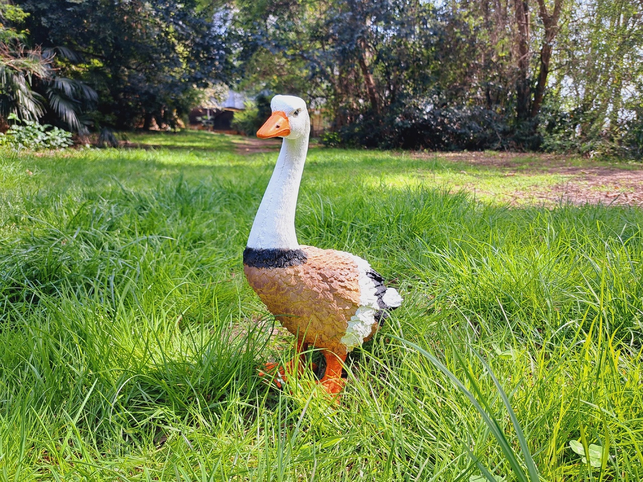 Гуси и утки олицетворяют хозяйственность и расторопность. Такой помощник на садовом участке станет символом порядка и предусмотрительности. Фигура птицы, расположенная в траве, придаст окружающему пространству живость и ощущение широты. Садовая фигура из полистоуна (искусственного камня) — оптимальное решение для уличных условий. Этот материал не выцветает на солнце, даже если находится под воздействием ультрафиолета круглый год
