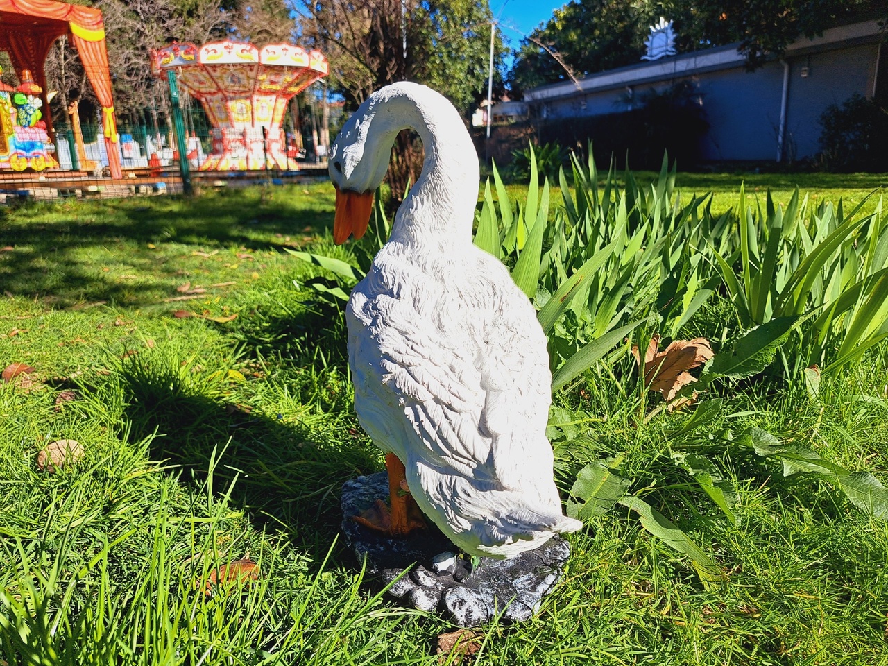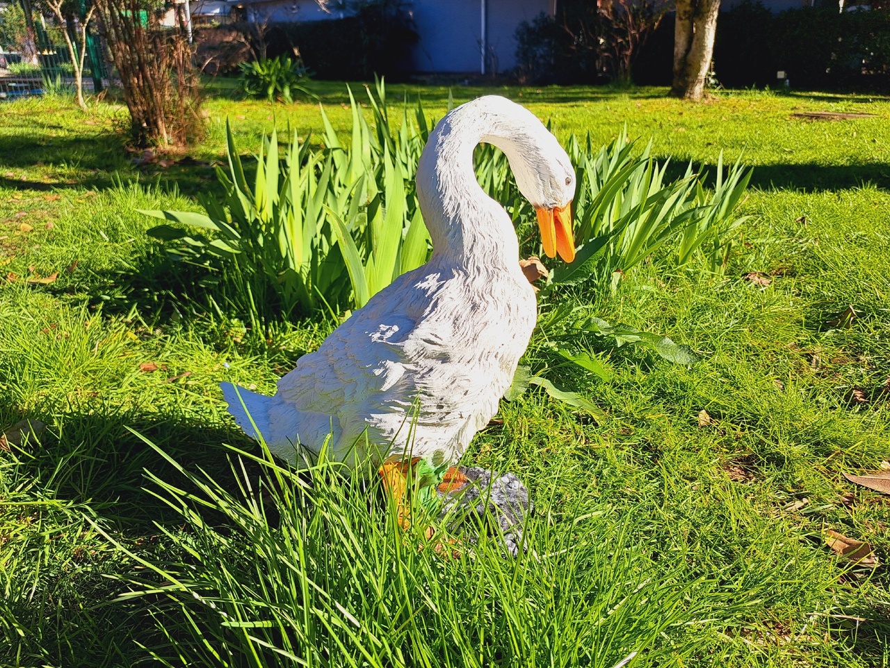 Гуси и утки символизируют хозяйственность и расторопность. Такие помощники на садовом участке станут олицетворением порядка и предусмотрительности. Фигура, расположенная в траве, придаст окружающему пространству уют и ощущение просторности.