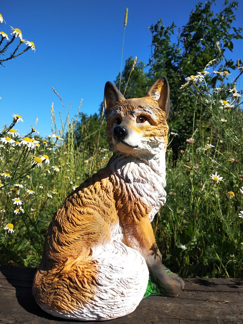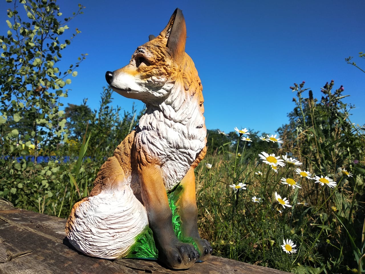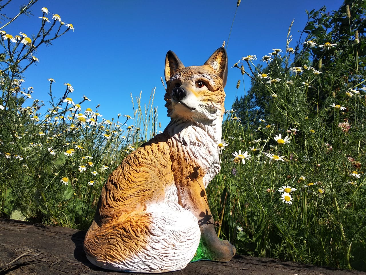 Садовая фигура лиса. Создайте настроение в любимом саду — украсьте его оригинальным декором. Очаровательная лиса разнообразит ландшафт, гармонично будет смотреться в вашем саду — вблизи деревьев, и у входа возле калитки.