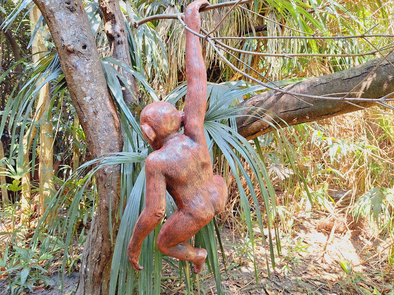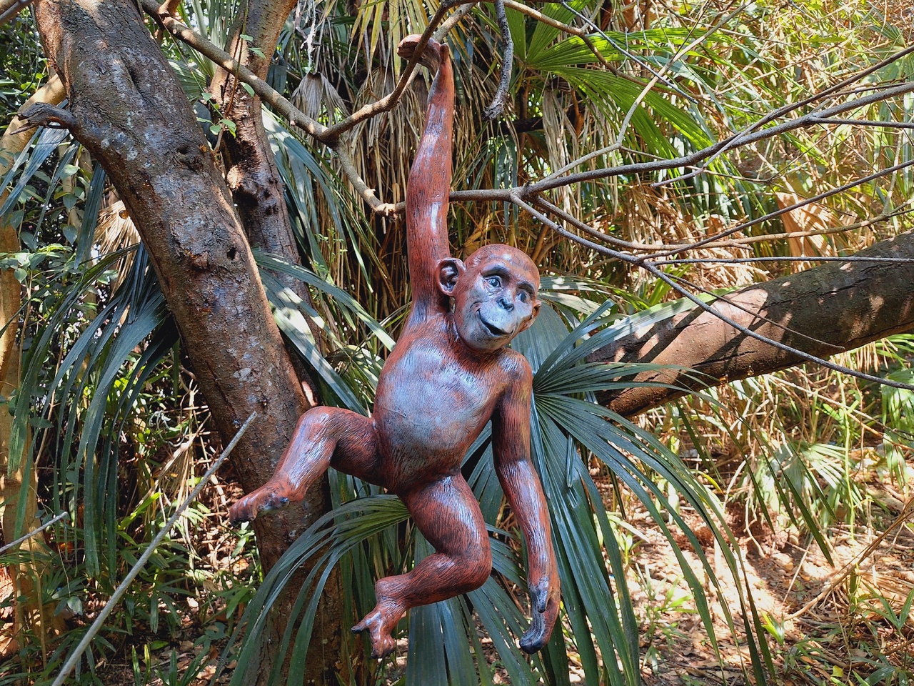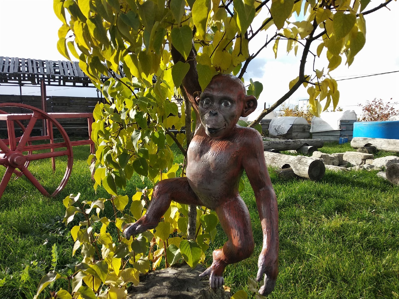 Садовая фигура Обезьянка в сочетании с другими элементами и форматами создадут особую атмосферу и неповторимый стиль. Фигура обезьяна -это средняя по размерам ландшафтная фигура как бы встречает Вас как будто бы скучала по вам целый день и наедятся на взаимность. Весьма забавная садовая скульптура ее можно расположить около стены дома или забора вашего участка, а так же на дереве или пальме.