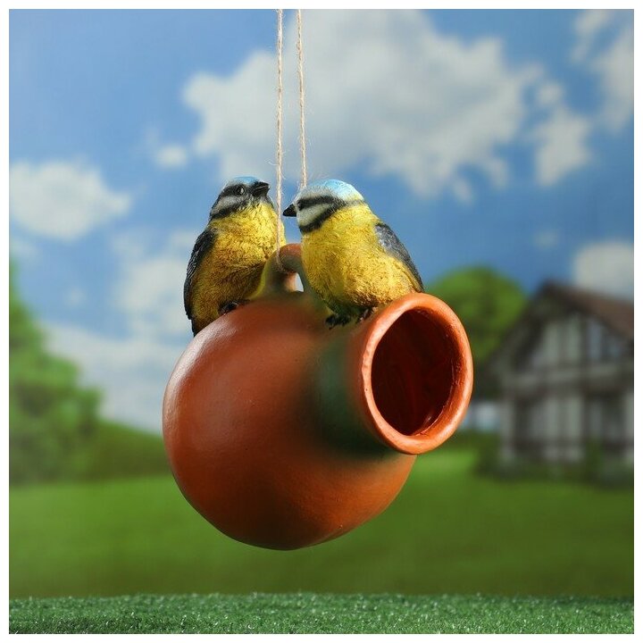 Подвесной декор — кормушка «Кувшин с птичками» Птицы – особенно привлекательные символы, потому что они могут свободно летать над землей. Стоит также отметить, что каждая птичка излучает свою уникальную энергию, соответственно станут прекрасным дополнением на вашем садовом участке, фигура изготовлена из полистоуна искуственного камня , не боится влали и перепадов температуры поэтому прослужит для вас долгие годы, сохроняя превлекательный вид.