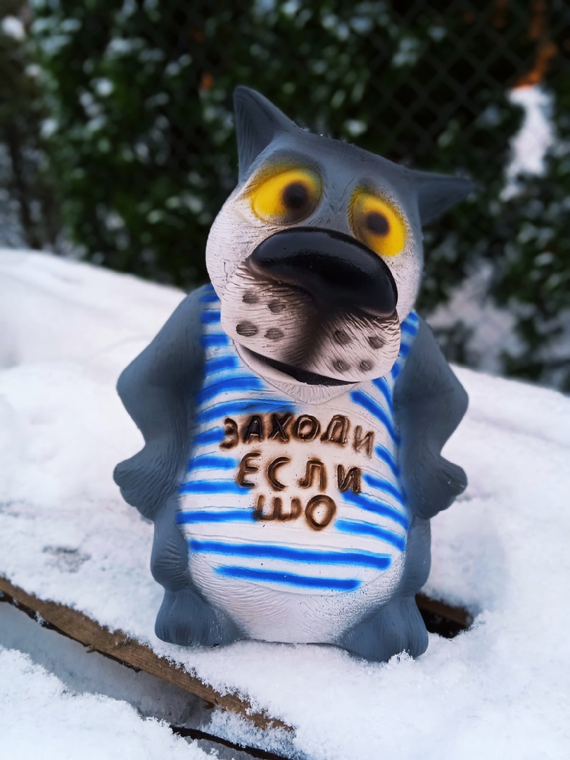 Оригинальная садовая фигура Волк в тельняшке «Заходи если шо». Изготавливается из полистоуна, искусственного камня, который сочетает в себе все качества природного материала, устойчивы к воздействию влаги.