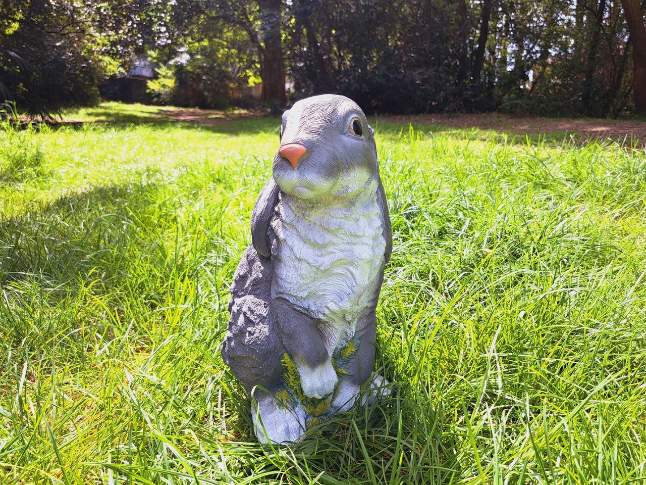 Садовая фигура «Заяц большой» выглядит реалистично благодаря качественной проработке мелких деталей и хорошо подобранным цветам с плавными переходами между оттенками. Это отличное украшение для садового участка, дворовой клумбы или палисадника. Фигурка оживит ландшафтный дизайн, поможет воссоздать атмосферу лесного уголка