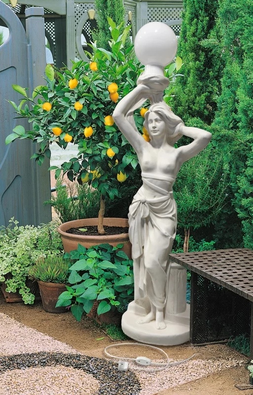 Садовая скульптура Античная девушка с фонарем подключение от электросети