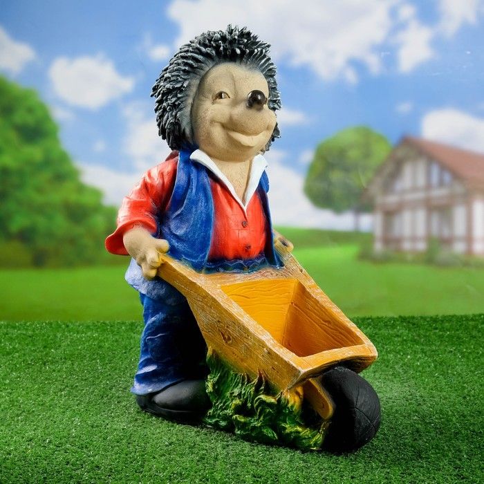 Садовое кашпо для цветов Еж с тачкой, 44х45 см.