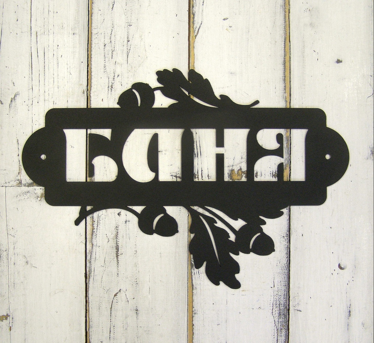Стальные таблички  выполнены в виде   надпись Баня  сразу бросается в глаза
