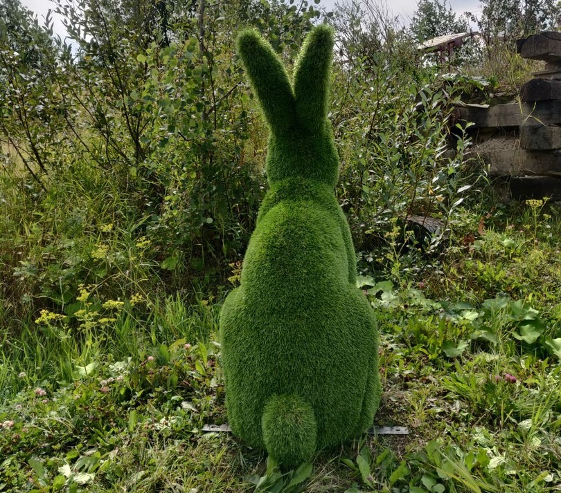 Топиари фигура зайчонок стоячий словно настоящий может дополнить общую картину ландшафтного решения вашего участка! Такая фигура будет украшать ваш загородный участок или территорию кафе долгое время и не приносить вам ни каких хлопот, так как выполнена из сверхпрочного стеклопластика.