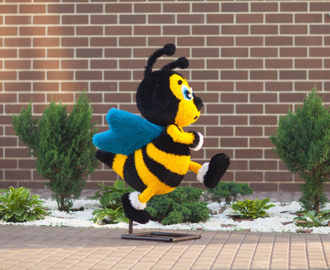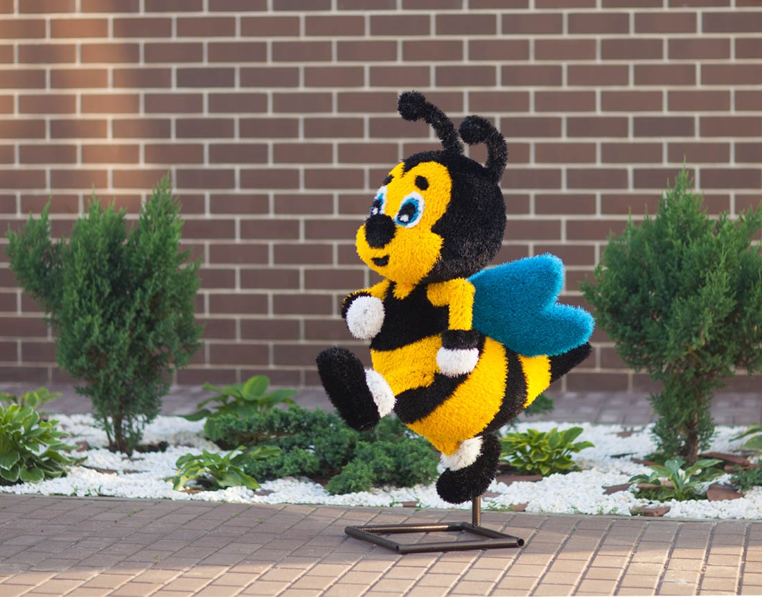 Отличным подарком ребенку послужит долговечный и не требующий сложного ухода пчелка-топиари. Небольшая, ярко-жёлтая фигурка пчёлки выглядит, как оживший персонаж мультика. Для натуралистичности создатели внесли в эскиз и черные полоски, яркие голубые крылышки.