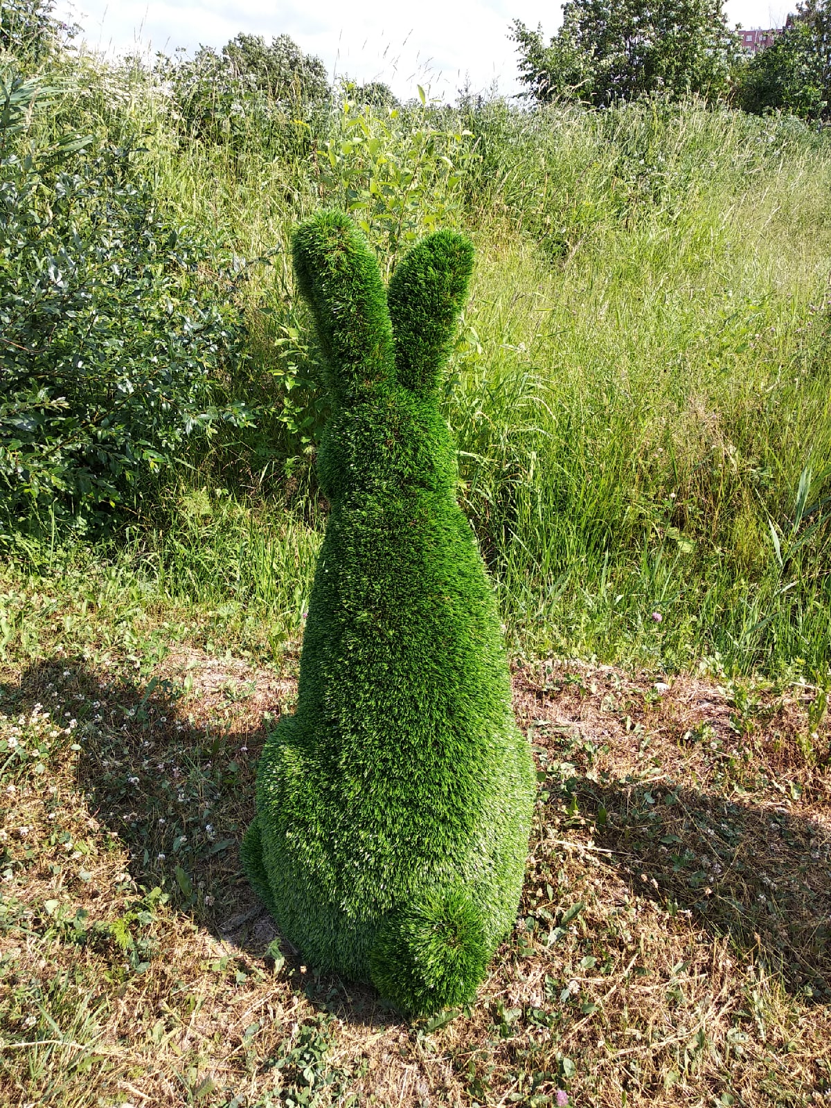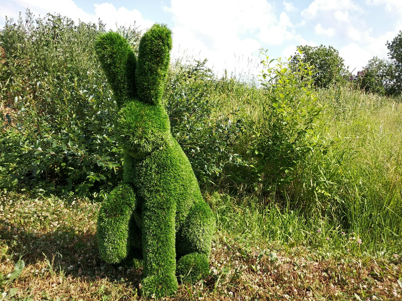 Топиари фигура зайчонок стоячий словно настоящий может дополнить общую картину ландшафтного решения вашего участка! Такая фигура будет украшать ваш загородный участок или территорию кафе долгое время и не приносить вам ни каких хлопот, так как выполнена из сверхпрочного стеклопластика.